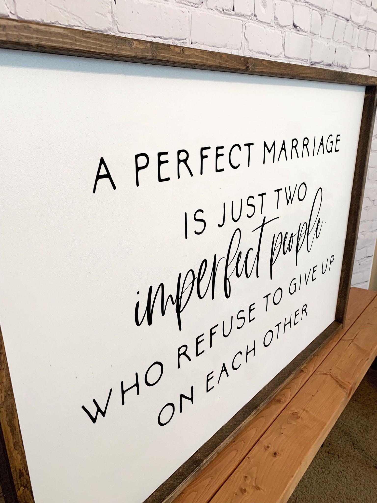 A perfect marriage is just two imperfect people who refuse to give up on each other | framed wood sign | Above the bed wall decor | Wall art