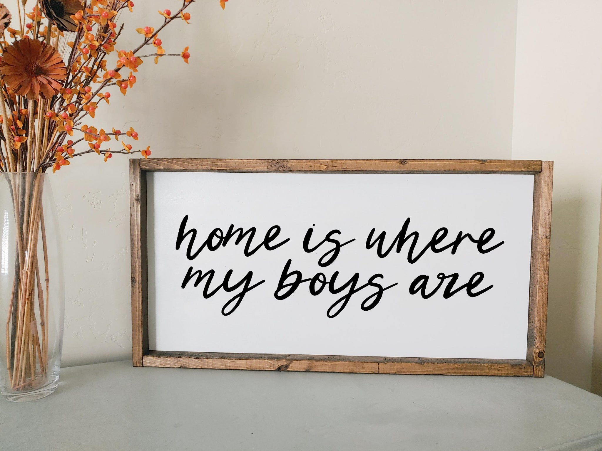 Home is where my boys are | framed wood sign | Entry way wall decor | Above over couch wall art | Living room home decor