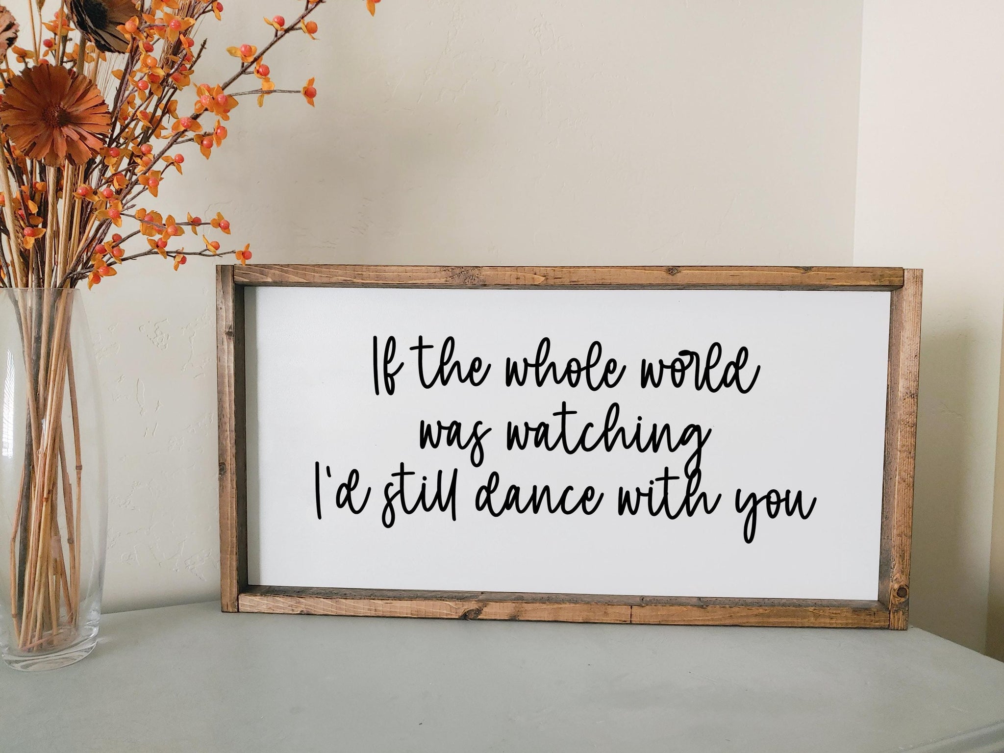 If the whole world was watching I'd still dance with you | framed wood sign | Above over the bed wall art | Anniversary gift | first dance
