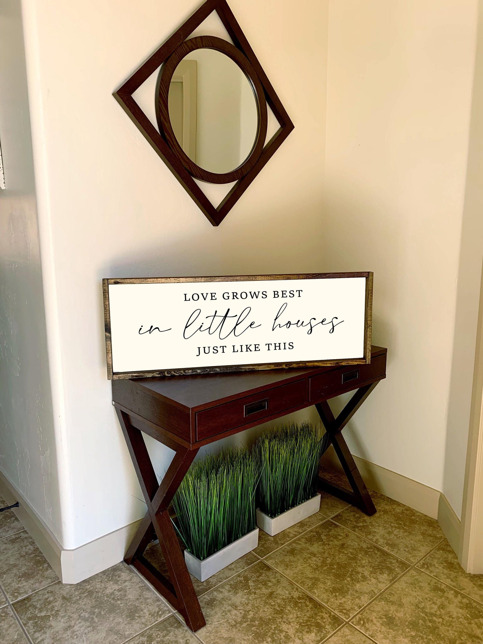 Love grows best in little houses just like this | framed wood sign | New home gift | Wall art | Living room wall decor