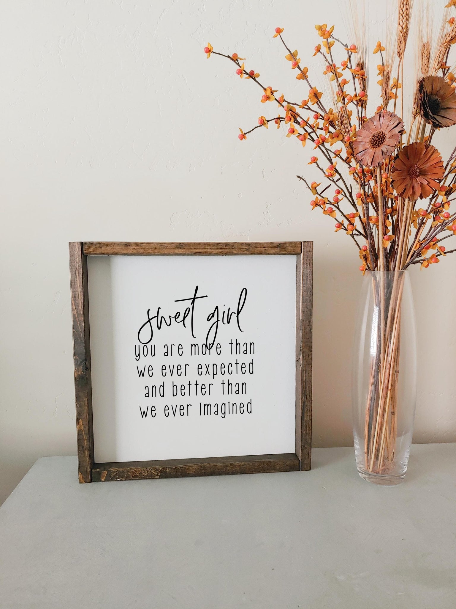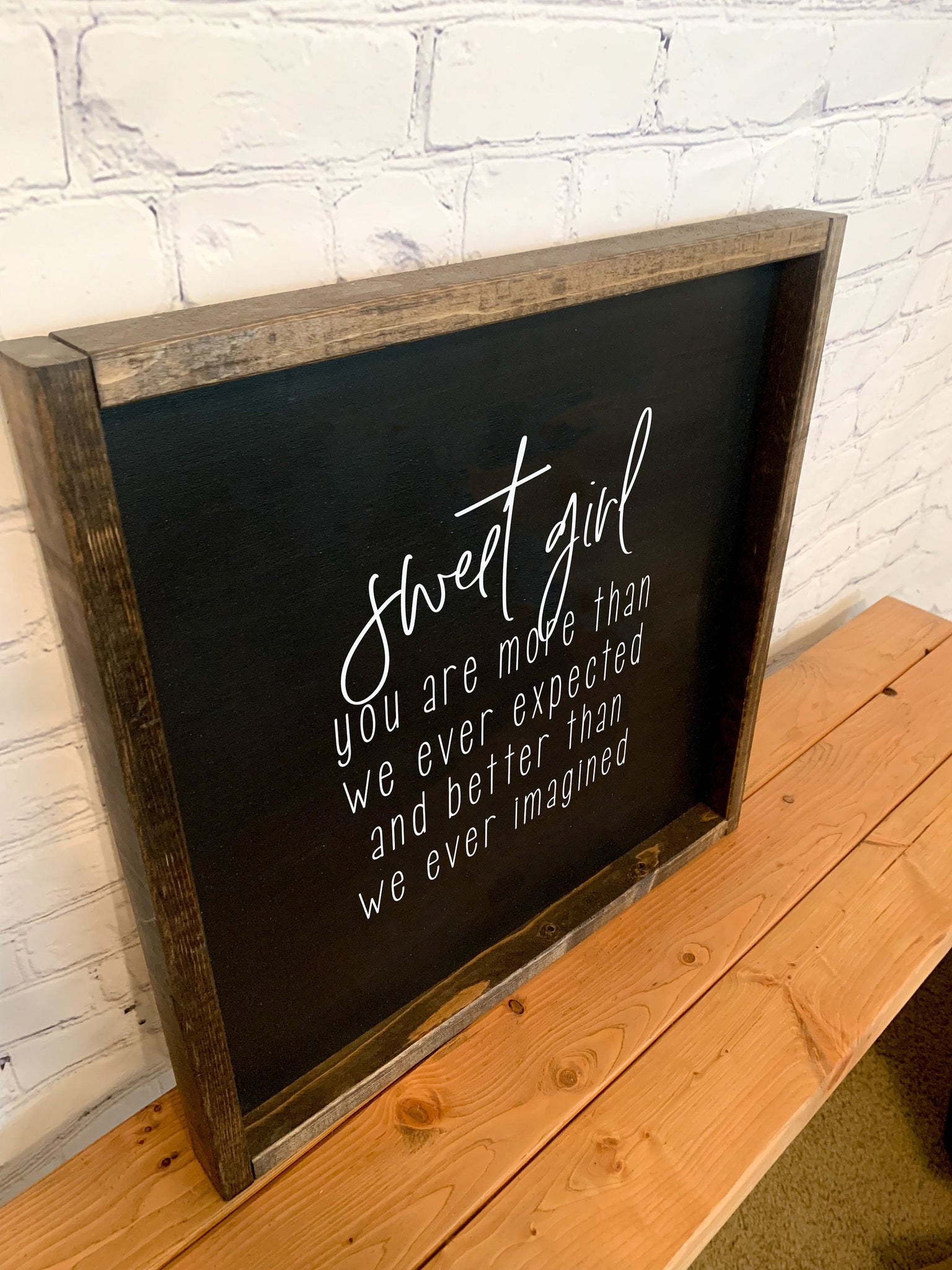Sweet girl you are more than we ever expected and better than we ever imagined | framed wood sign | Wall art | Above crib wall decor