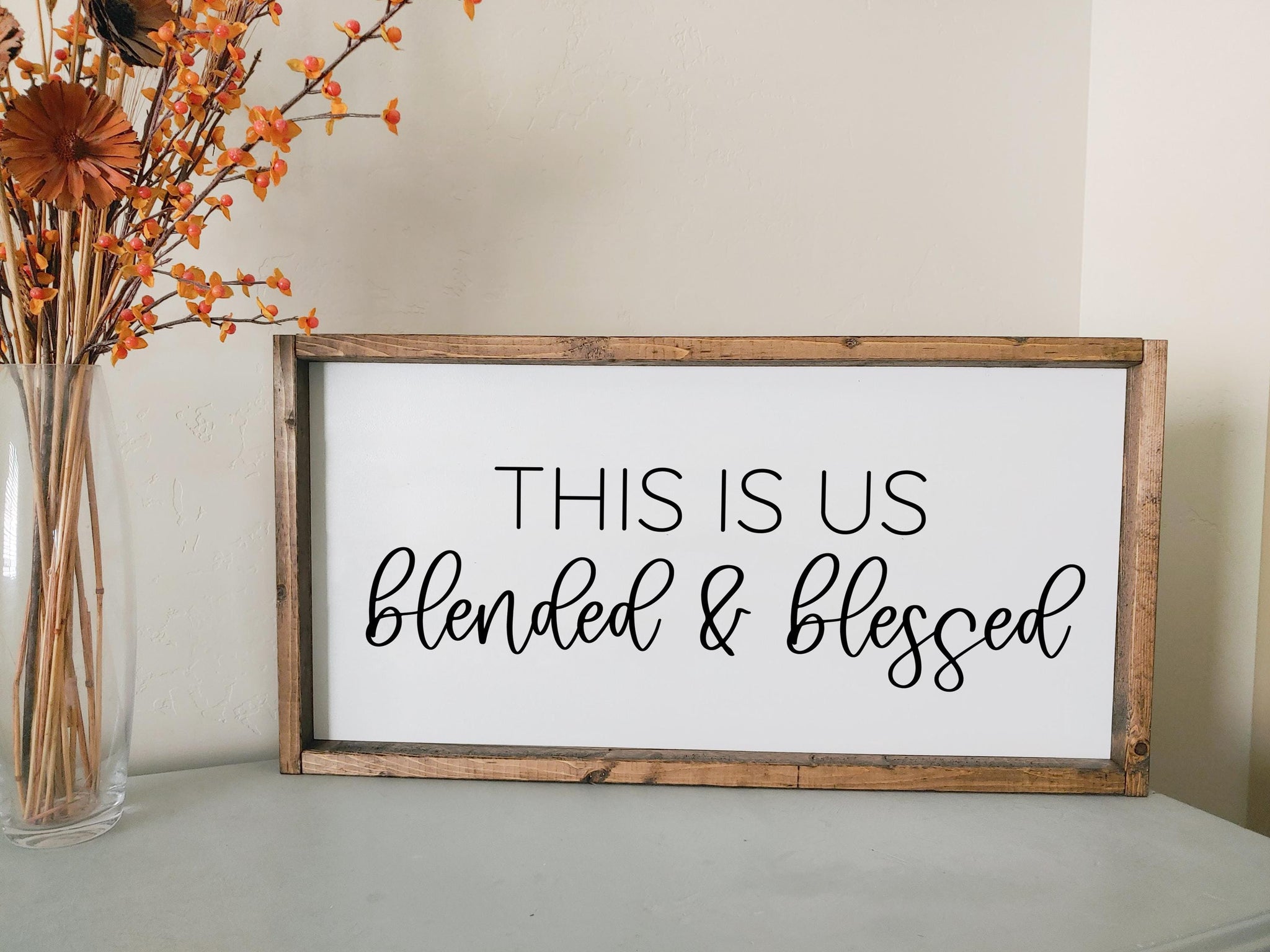 This is us blended and blessed framed wood sign | Above the couch decor | Anniversary gift | Wall art | Blended family gift