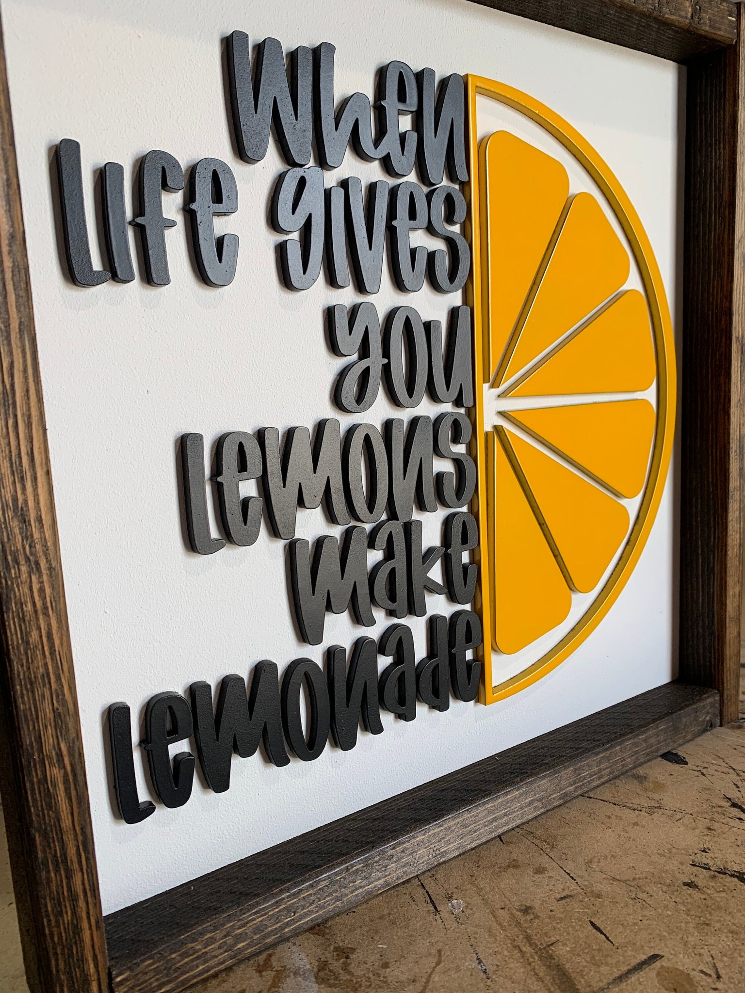 When life gives you lemons make lemonade  | 3D lettering framed wood sign | Wall art
